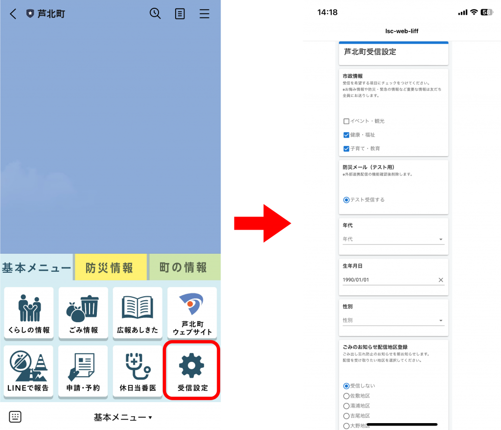 これまではLINEに登録している全ての住民に送られていた配信ですが、リニューアル後からは欲しい配信カテゴリーを選択し、欲しい情報を選ぶことが可能となりました。