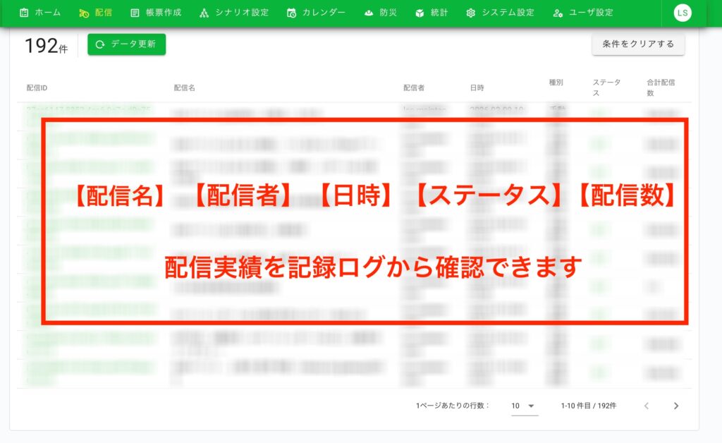 また、配信実績を記録ログから確認できます。
