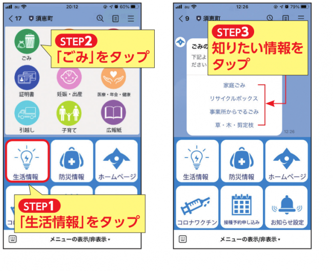 LINE公式アカウントの開設により新型コロナウイルス、防災、ごみの収集日、イベント情報など、生活に密着したきめ細やかな情報が町民にスピーディに届く。また、町民一人ひとりが必要とする情報を選択方式で設定でき、ごみの取集日などを該当する当日に受信することも可能に。