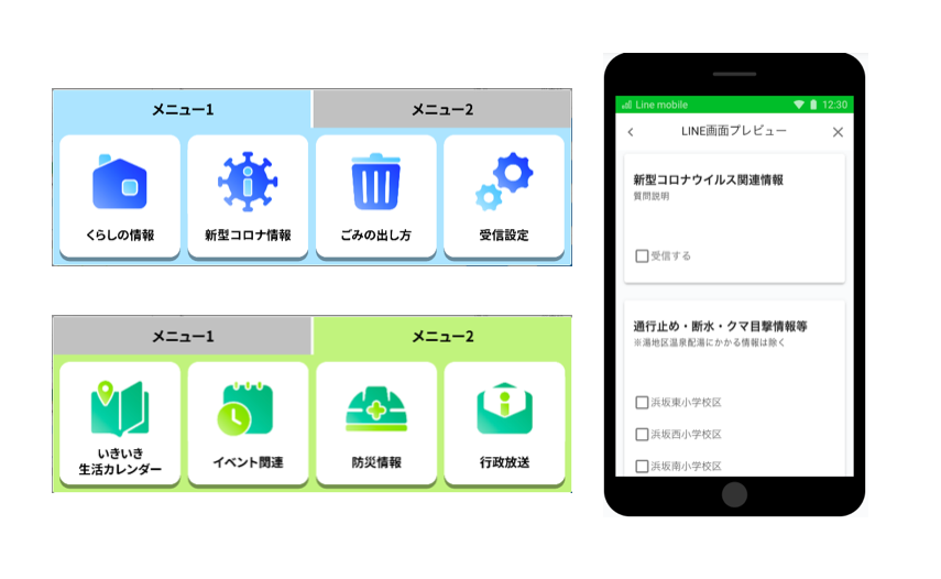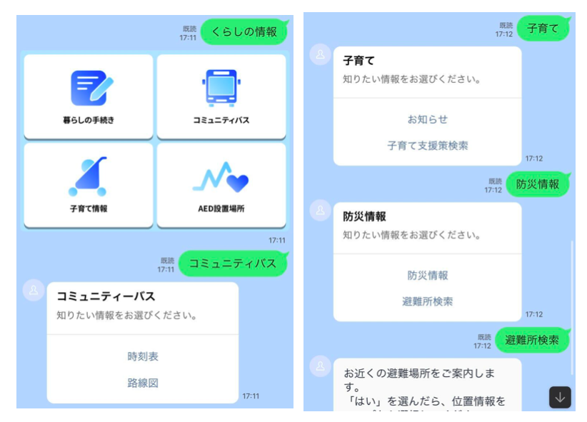 また「ごみの出し方」や「子育て情報」、「ごみのリマンド配信」など住民が必要とする情報をチャットボットで受け取れるなど、LINEを通じた住民の暮らしに役立つサービスの拡充に取り組んでいます。