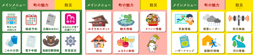 リッチメニューのタブ機能を導入し、生活に関わる情報から、町の魅力、防災といった幅広いコンテンツの提供が可能となりました。